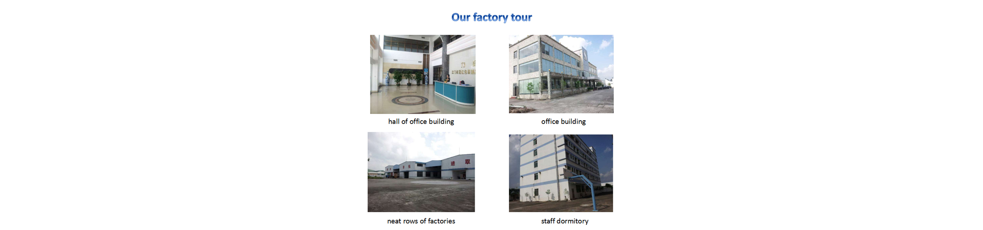 Till 2011, we bought 30000mm land at LinGang Industial Area,GuJing Town,XinHui,JjiangMen City,GuangDong,with 15000mm building of plant,office and dormitory.